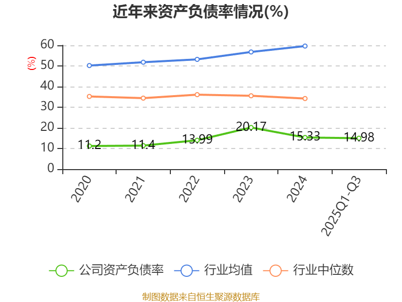 2025年前三季度,公司流动比率为3.59,速动比率为3.29。